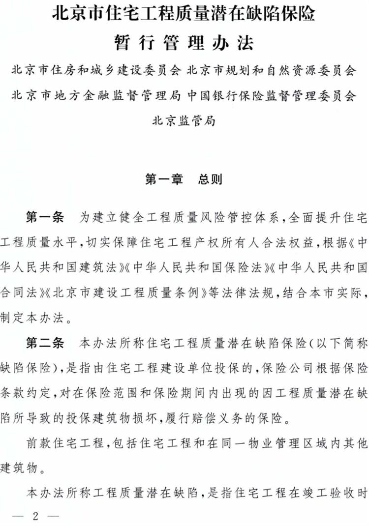 《北京市住宅工程質(zhì)量潛在缺陷保險暫行管理辦法》